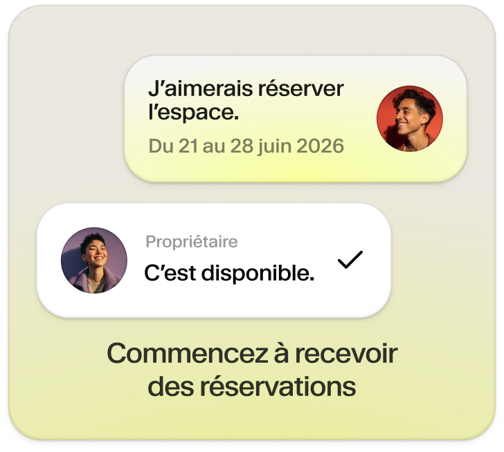 Vous trouverez sur notre plateforme toutes sortes d’espaces : restaurants, bars, pubs, hôtels, écoles de cuisine ou de danse, salons de coiffure, espaces de coworking, usines désaffectées, studios photo, bateaux, et bien plus encore. Tout espace adapté à la location courte durée peut être référencé sur notre plateforme. Le service de vérification des espaces sera bientôt disponible ; en attendant, nous vous recommandons d’utiliser des photos de haute qualité et représentatives sur vos profils afin d’optimiser vos chances de location.